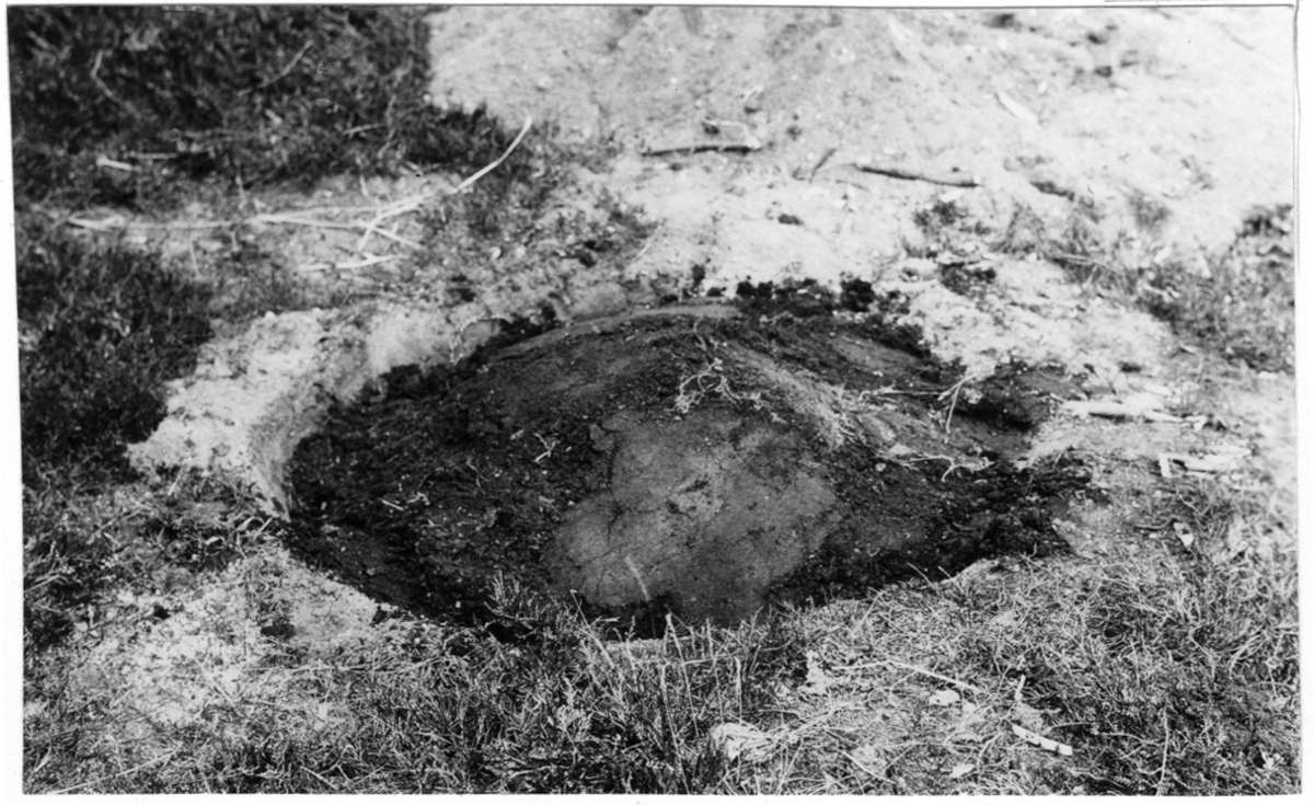 'Bildtext: ''Julgran.'' Kolning i grop. Gropen helt täckt med grästorvor och jord så att ingen rök uttränger.'' Närbild på kolningsgrop täckt med grästorvor. :: :: Fotonr. 7046:369-382 indelade som ''Kolning.'' Ingår i serie med fotonr. 7046:1-383, 7047:1-33 och 7048:1-67 med bilder från Länsjägmästare John Lindners bildarkiv.'