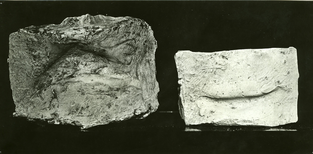 'Brugd, hane juv. strandad vid Knösund, Kyrkosund. 1 :: Skelett och gipsavgjutning. Coll.an. 3396-3400. Fynddatum: 1914-02-06. :: :: Ingår i serie med fotonr. 545-557:7.'
