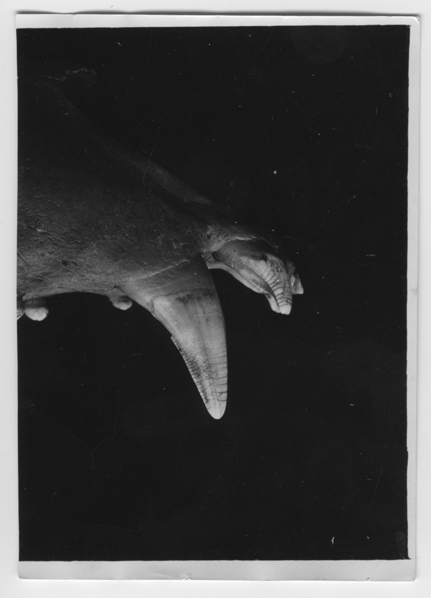 'Överkäke av björn, sedd från sidan. Gen.kat.nr. 1927-4618. :: :: Bilden använd i Göteborgs Naturhistoriska Museums Årstryck 1937 s. 11.'