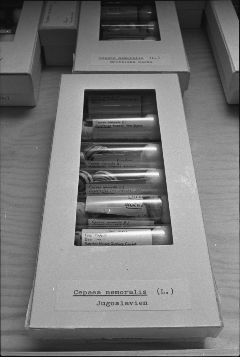 'Mollusklådor med brunläppad trädgårdssnäcka . :: :: Ingår i serie med fotonr. 5977:1-4. Se även fotonr. 5976:1-6.'