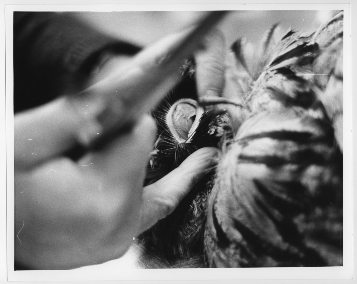 'Mätning av berguvar i ateljén. :: :: Ingår i seri emed fotonr. 5651:1-13.'