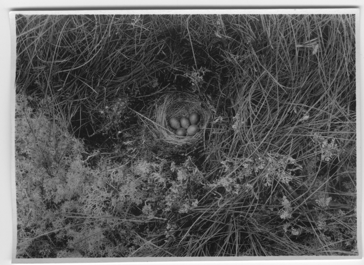 'Ängspiplärka, bo med 5 ägg. :: :: Ingår i serie med fotonr- 1114-1147.'
