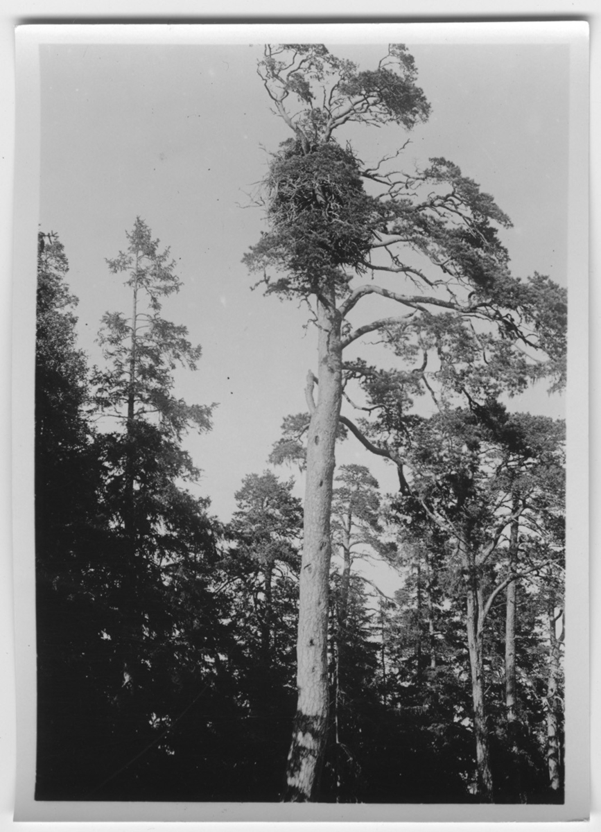 'Havsörnbo i tallkrona. Tallskog i bakgrunden. :: :: Ingår i serie med fotonr. 1771-1837. Se även fotonr. 3151-3200.'