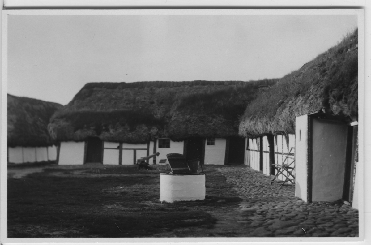 'Biologiska föreningens utfärd till Läsö och Nordre Rönner: :: :: Bangsbo gård. Innergården med brunn, gräsbevuxet tak. Korsvirkesbyggnad. :: :: Se fotonr. 2674-2734, 2687-2691, 2692-2711, 2714-2734, 2843-2863 och 2975 från samma utfärd.'