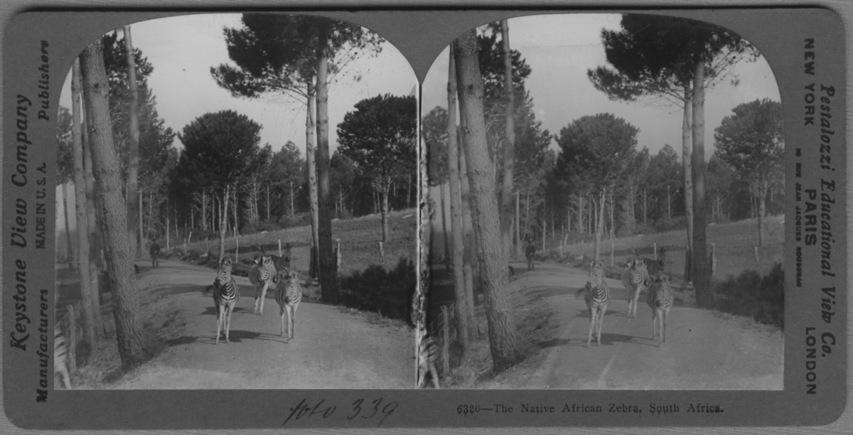 '4 sebror på en väg. :: ''6320 - The native african Zebra, South Africa.'' :: :: Ingår i serie med fotonr. 315-422.'