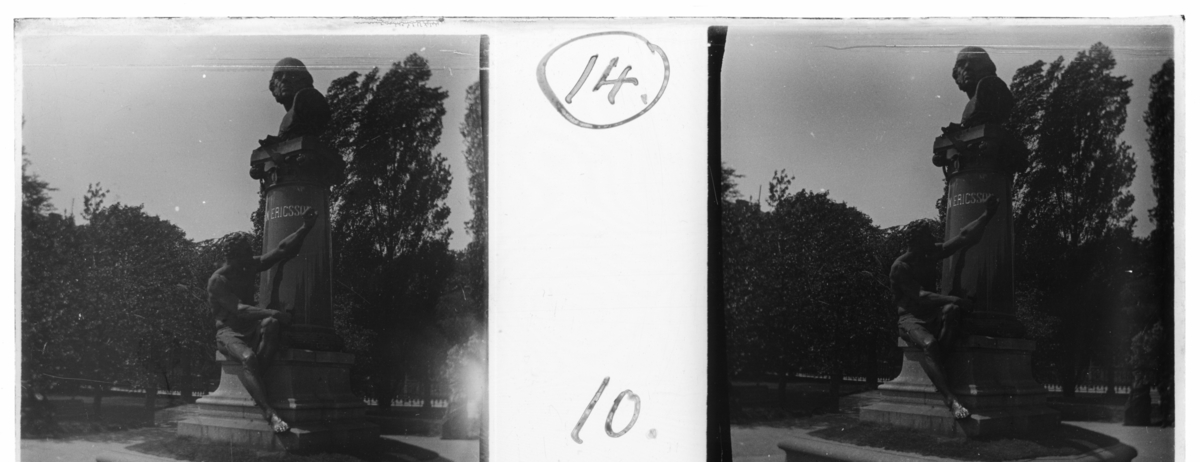 'Staty med byst och 1 hel mansfigur. :: Enligt text till fotot: ''John Ericsson satue.'' (John Ericsson statyn.) :: :: Ingår i serie med fotonr. 5246:1-17, se även hela serien med fotonr. 5237-5267.'