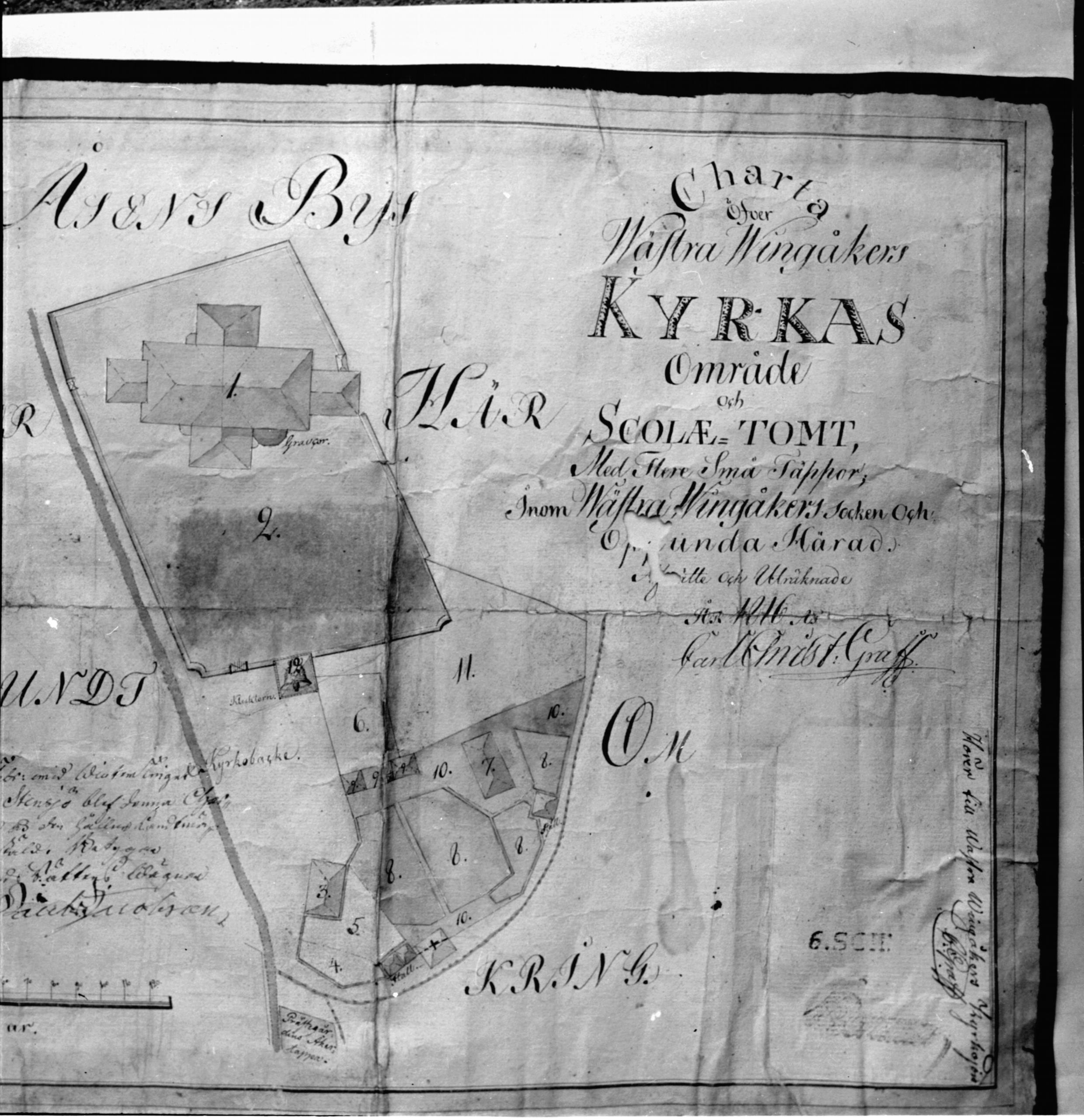 Kyrkan och dess omgivning. Foto efter karta från 1816.