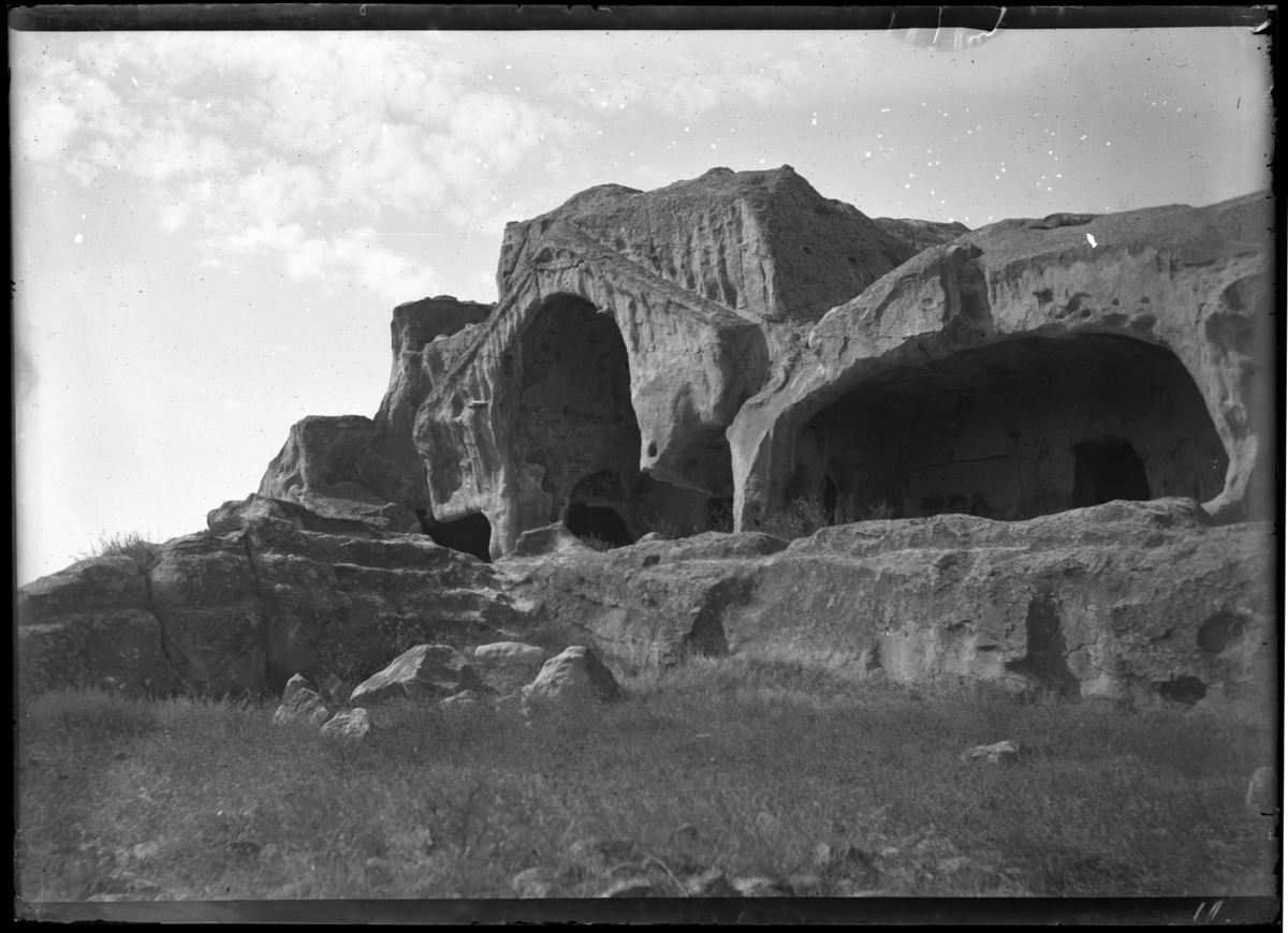'Vy med en slags byggnation i berg. Utformat som del av hus. :: :: Ingår i serie med fotonr. 5279:1-16. Se även fotonr. 5269-5292 med bilder från Stuxbergs resa till Kaukasien.'