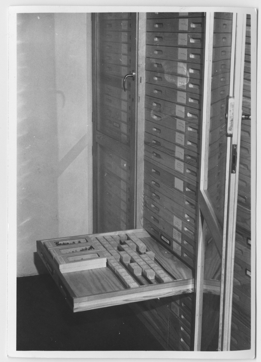 'Mollusksamlingen på Göteborgs Naturhistoriska museum: :: :: Utdragen låda med små askar och provrör. :: :: Se även fotonr. 6965:6-7, 12-13 och 15. Ingår i serie med fotonr. 6965:1-25.'