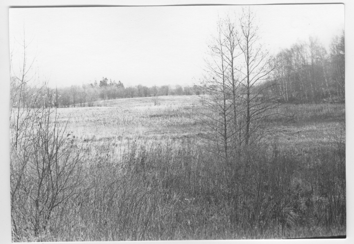 'Bildtext: ''Sankäng. Riktning 84.'' :: Vy över öppet fält, sankängen och omgivande trädvegetation, björk, lövträd. :: :: Ingår i serie med fotonr. 6970:1-1125, dokumentation av Hisingens naturgeografi, visande landskapsformerna i stora drag och gjord inför exploateringen av området. Platserna för fotograferingen finns utsatta på karta i skala 1:4000 som finns på Göteborgs Naturhistoriska musem. Fotoriktningen mättes med kompass i gammalgrader.'
