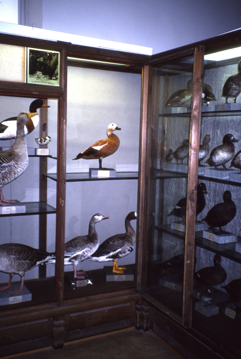 'Fågelgången på Göteborgs Naturhistoriska museum: :: Svenska fåglar. Andfåglar. :: :: Ingår i serie med fotonr. 1-27'