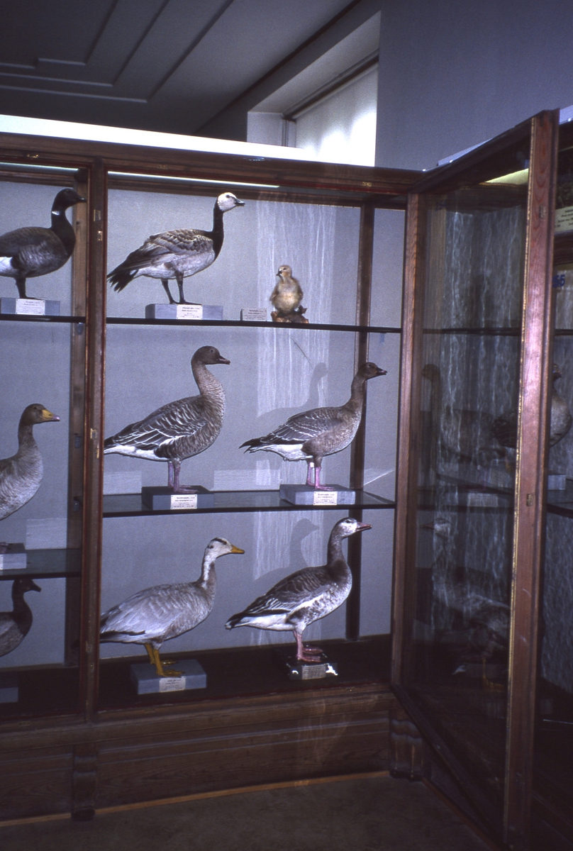 'Fågelgången på Göteborgs Naturhistoriska museum: :: Svenska fåglar. Gäss. :: :: Ingår i serie med fotonr. 1-27'
