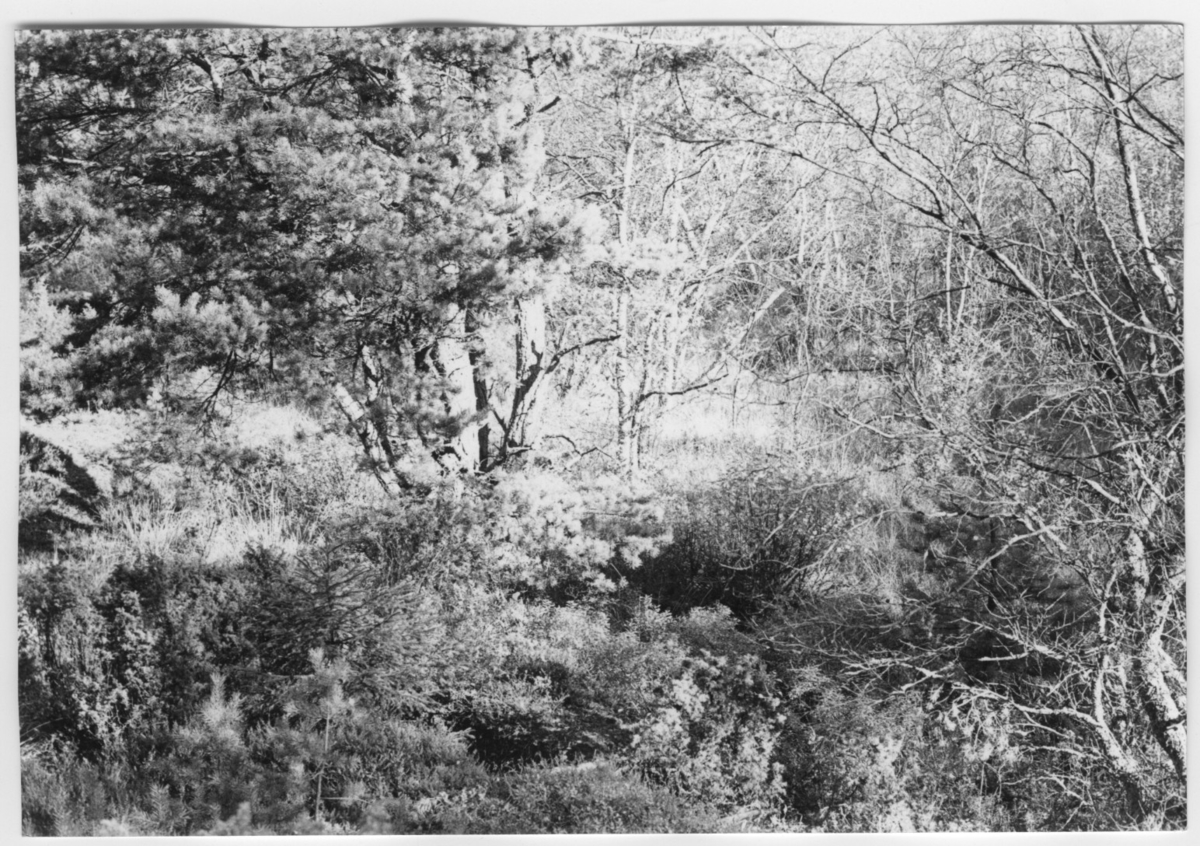 'Bildtext: ''Igenvuxet kärr. Riktning 42.'' :: :: Ingår i serie med fotonr. 6970:1-1125, dokumentation av Hisingens naturgeografi, visande landskapsformerna i stora drag och gjord inför exploateringen av området. Platserna för fotograferingen finns utsatta på karta i skala 1:4000 som finns på Göteborgs Naturhistoriska musem. Fotoriktningen mättes med kompass i gammalgrader.'