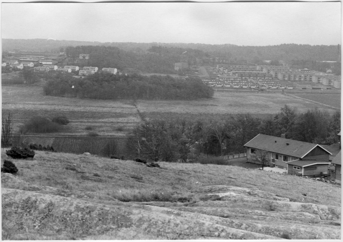 'Bildtext: ''Kvillens dalgång. Riktning 82.'' :: :: Ingår i serie med fotonr. 6970:1-1125, dokumentation av Hisingens naturgeografi, visande landskapsformerna i stora drag och gjord inför exploateringen av området. Platserna för fotograferingen finns utsatta på karta i skala 1:4000 som finns på Göteborgs Naturhistoriska musem. Fotoriktningen mättes med kompass i gammalgrader.'