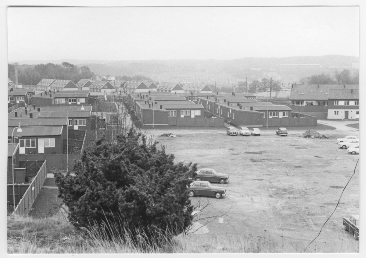'Bildtext: ''Bebyggd dalgång. Riktning 96.'' :: :: Ingår i serie med fotonr. 6970:1-1125, dokumentation av Hisingens naturgeografi, visande landskapsformerna i stora drag och gjord inför exploateringen av området. Platserna för fotograferingen finns utsatta på karta i skala 1:4000 som finns på Göteborgs Naturhistoriska musem. Fotoriktningen mättes med kompass i gammalgrader.'