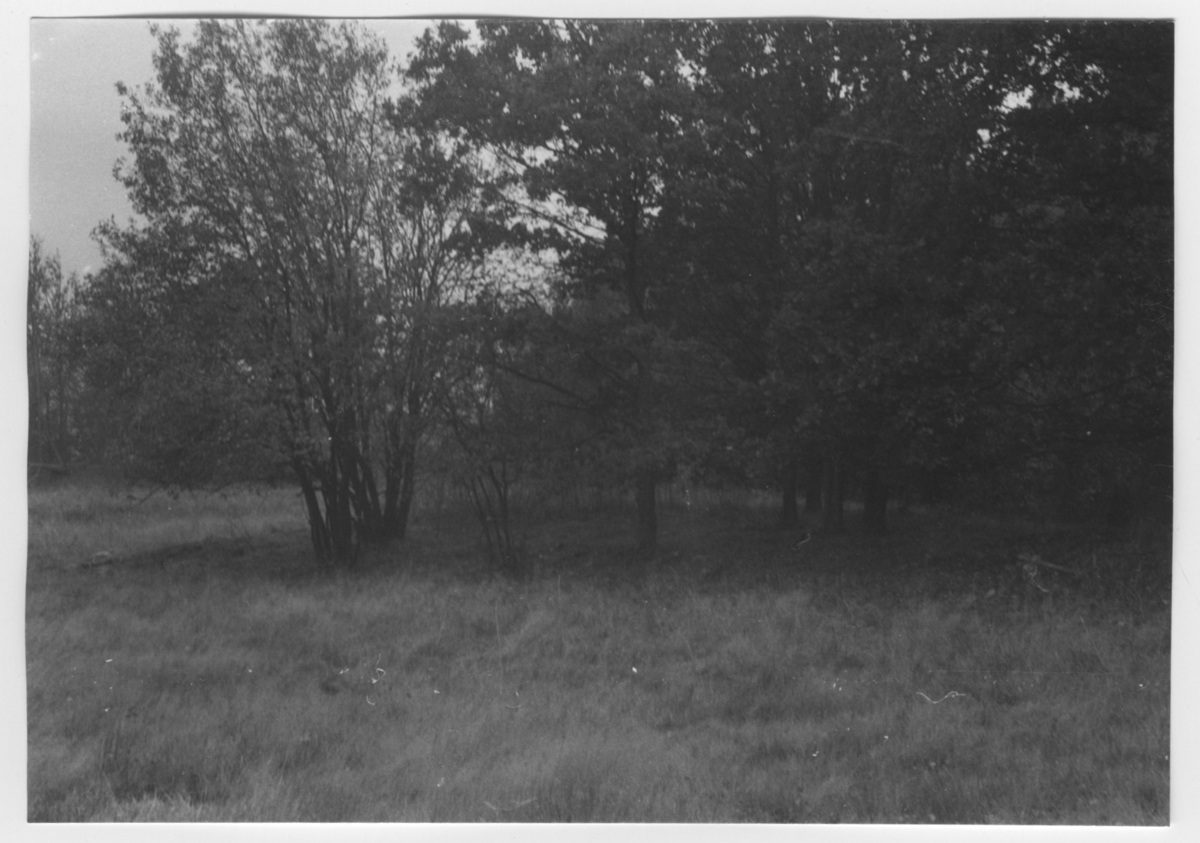 'Bildtext: ''Lövskog i hällandskap. Riktning 189.'' :: :: Ingår i serie med fotonr. 6970:1-1125, dokumentation av Hisingens naturgeografi, visande landskapsformerna i stora drag och gjord inför exploateringen av området. Platserna för fotograferingen finns utsatta på karta i skala 1:4000 som finns på Göteborgs Naturhistoriska musem. Fotoriktningen mättes med kompass i gammalgrader.'