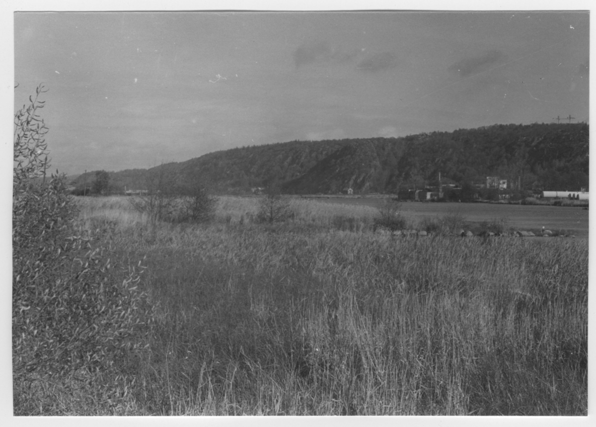 'Bildtext: ''Götaälvdalgången. Riktning 315.'' :: :: Ingår i serie med fotonr. 6970:1-1125, dokumentation av Hisingens naturgeografi, visande landskapsformerna i stora drag och gjord inför exploateringen av området. Platserna för fotograferingen finns utsatta på karta i skala 1:4000 som finns på Göteborgs Naturhistoriska musem. Fotoriktningen mättes med kompass i gammalgrader.'