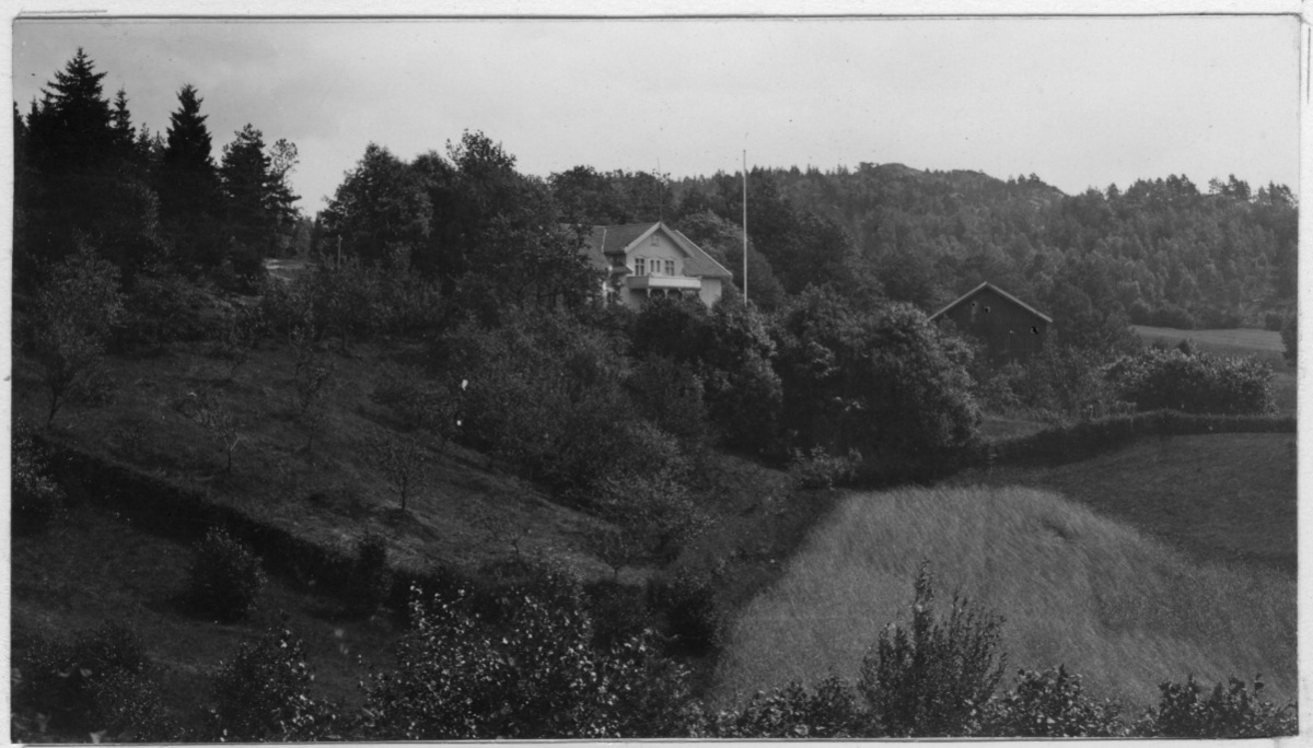 'Bildtext: ''Hejderidarebostället låg bakom den nuvarande mangårdsbyggnaden.'' Vy med öppen mark och hus. :: :: Fotonr. 7048:47-58 indelad under rubriken ''Skogsskötselns administration i Göteborgs och Bohus län''. Ingår i serie med fotonr. 7046:1-383, 7047:1-33 och 7048:1-67 med bilder från Länsjägmästare John Lindners bildarkiv.'