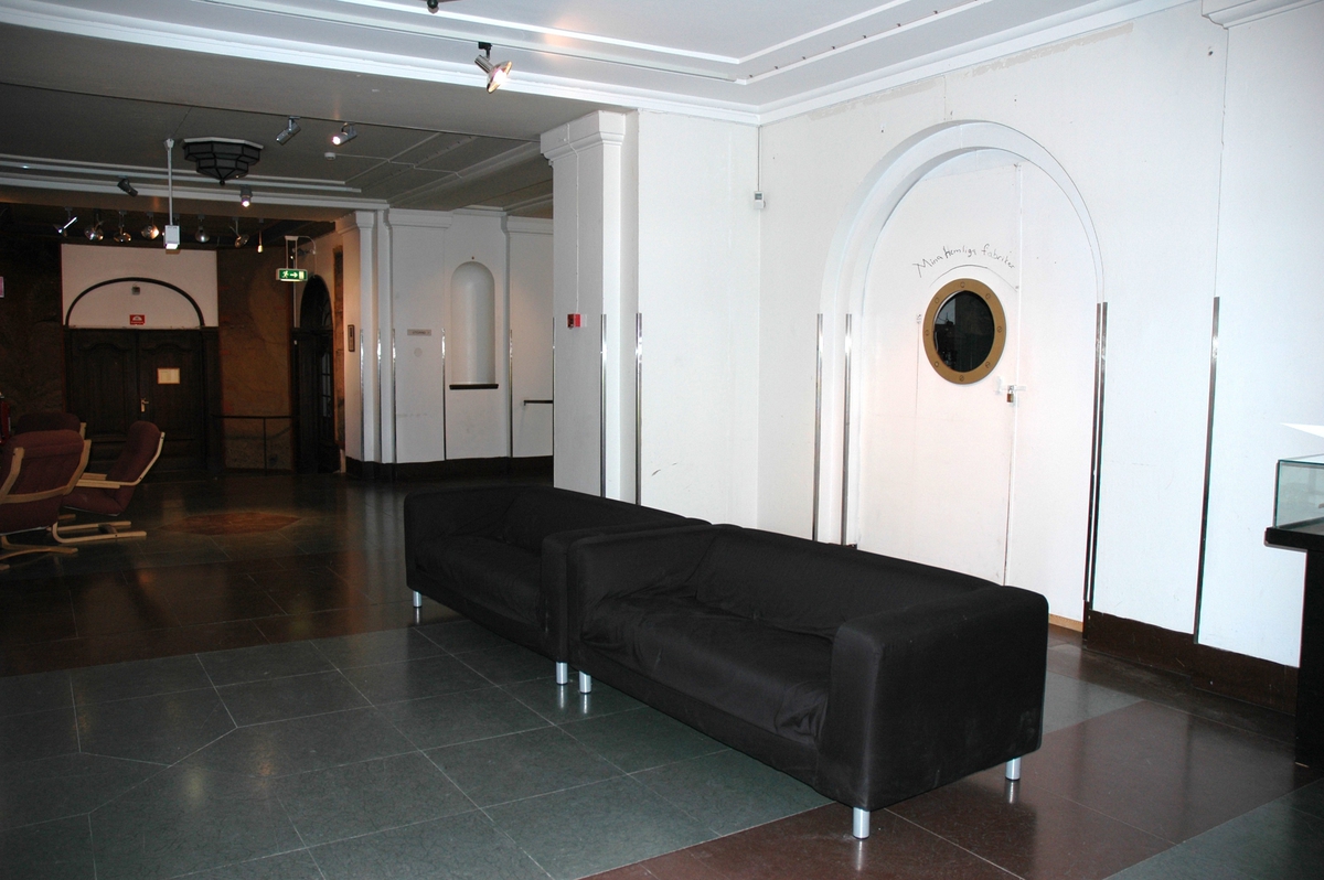 'Vestibulen vid gamla entrén. :: :: Fotonr. 7095 består av en bildserie som dokumenterar diverse utrymmen i byggnaden så som kontor, arbetsplatser, arbetsrum, magasin m.m. Bilder tagna före och efter olika ombyggnationer bl.a.'