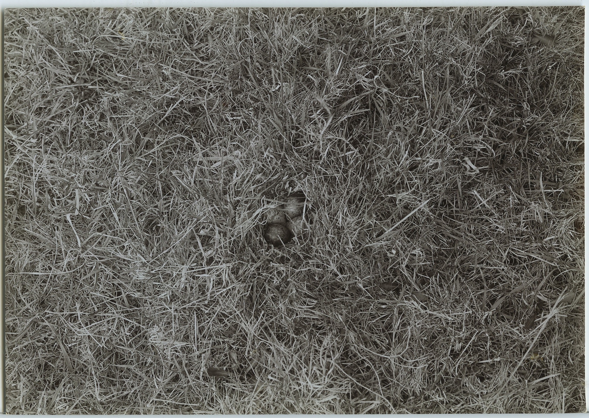 Kärrsnäppa, bo på marken med 4 ägg. Närbild.