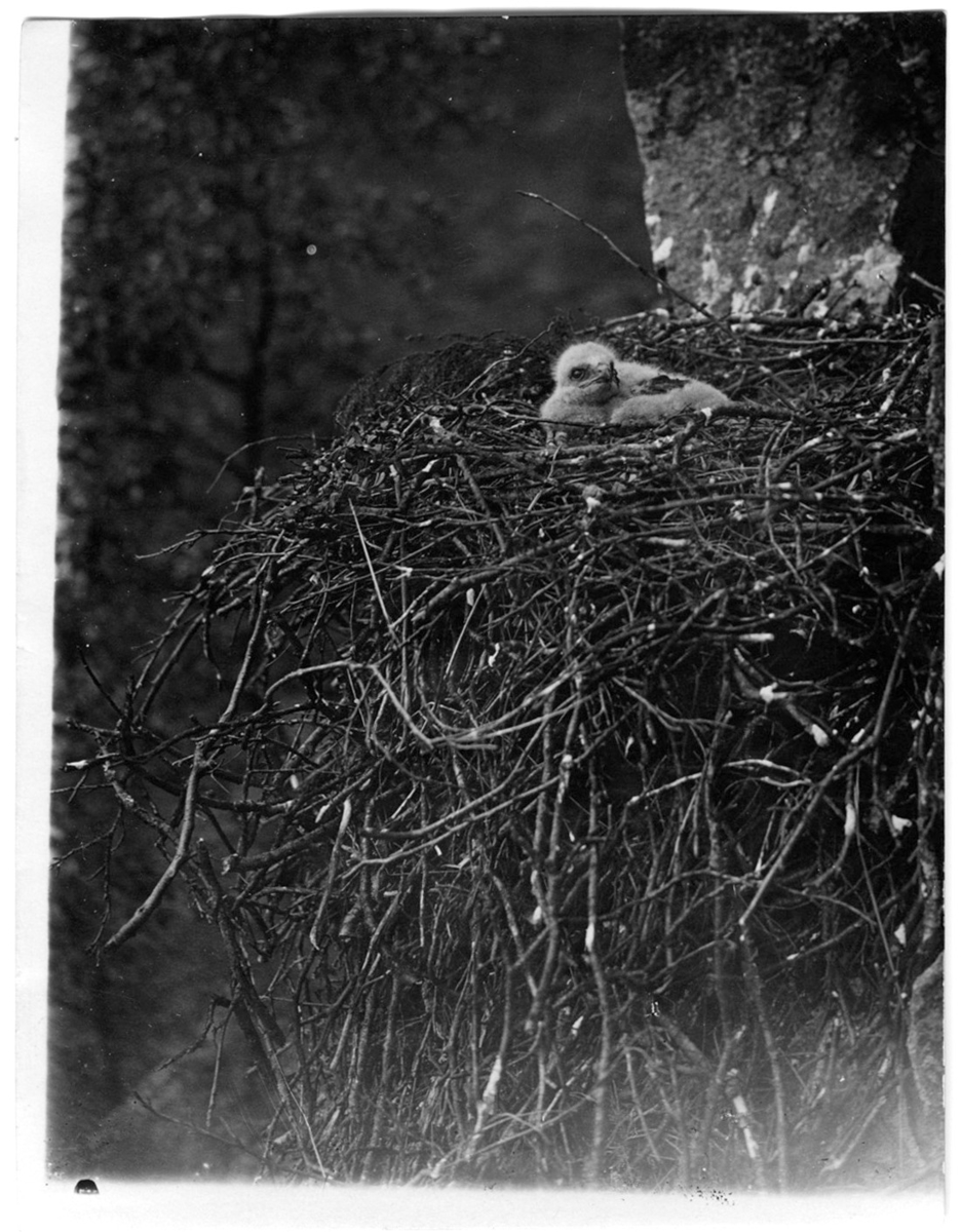 'Ensam fjällvråkdununge i boet, närbild. :: :: Ingår i serie med fotonr. 1690-1708.'
