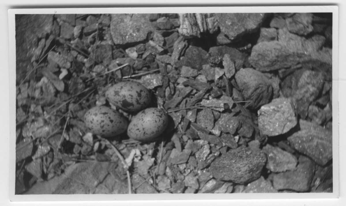 'Bo med 3 ägg direkt på småsten. Äggen är ruvade ca 8 dagar. :: :: Ingår i serie med fotonr. 4401-4440.'