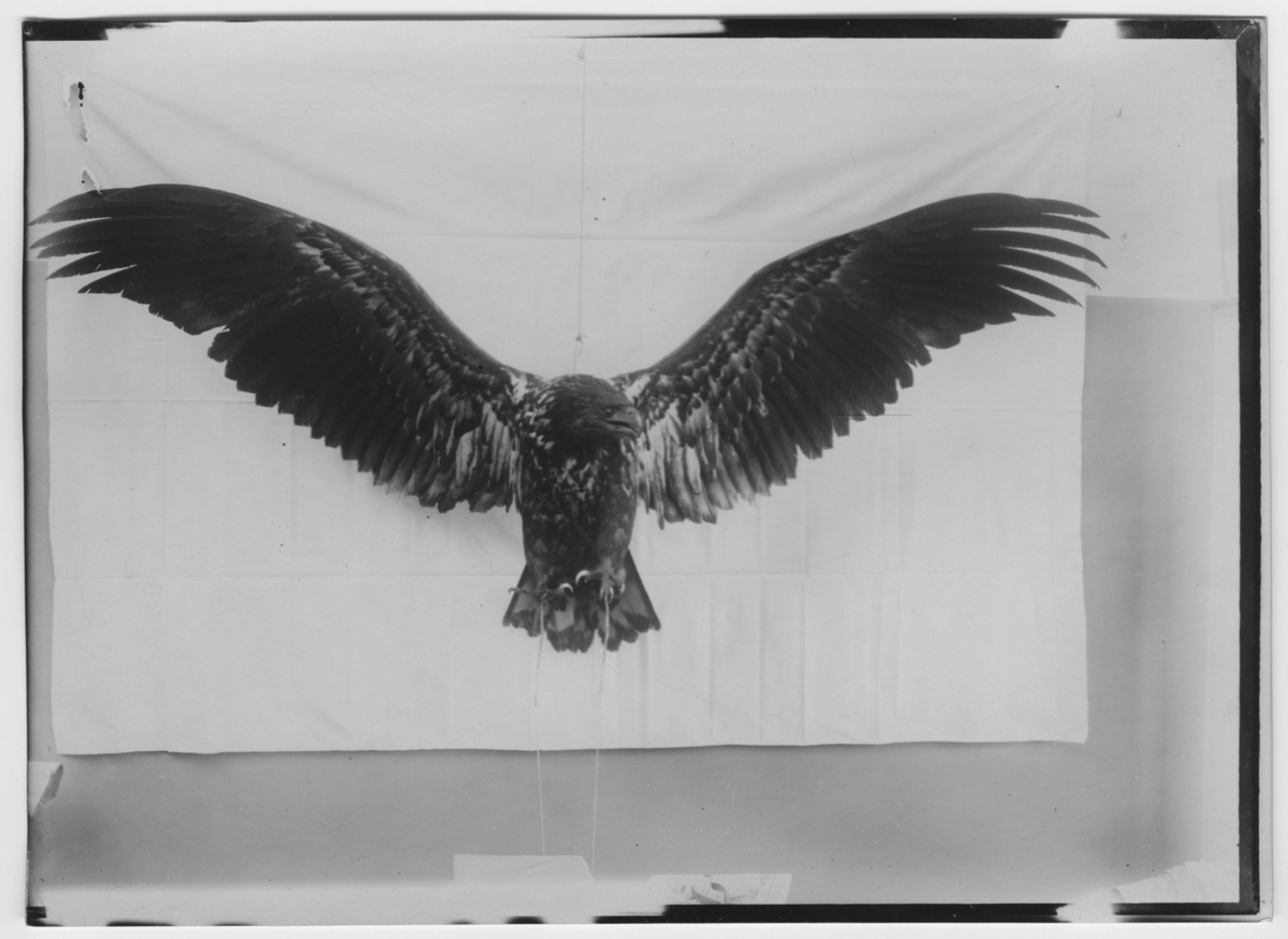 Aquila bifasciata. Stor örn upphängd framför lakan.