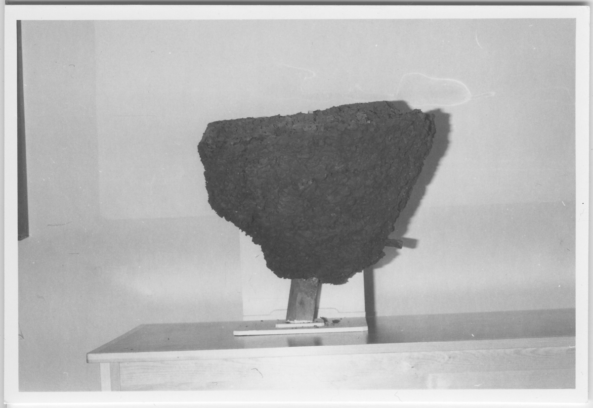 'Foton av jättebo av blanksvart trädmyra. Boet är ett pergamentsbo med storleken, 55 cm högt, bredd 55 cm, längd i horisontalplan 63 cm och vikt 6 kg. :: :: Fotonr. 4723-4728 har samma motiv. :: :: Serie fotonr 4716-4729, se även fotonr. 5086:1-3.'
