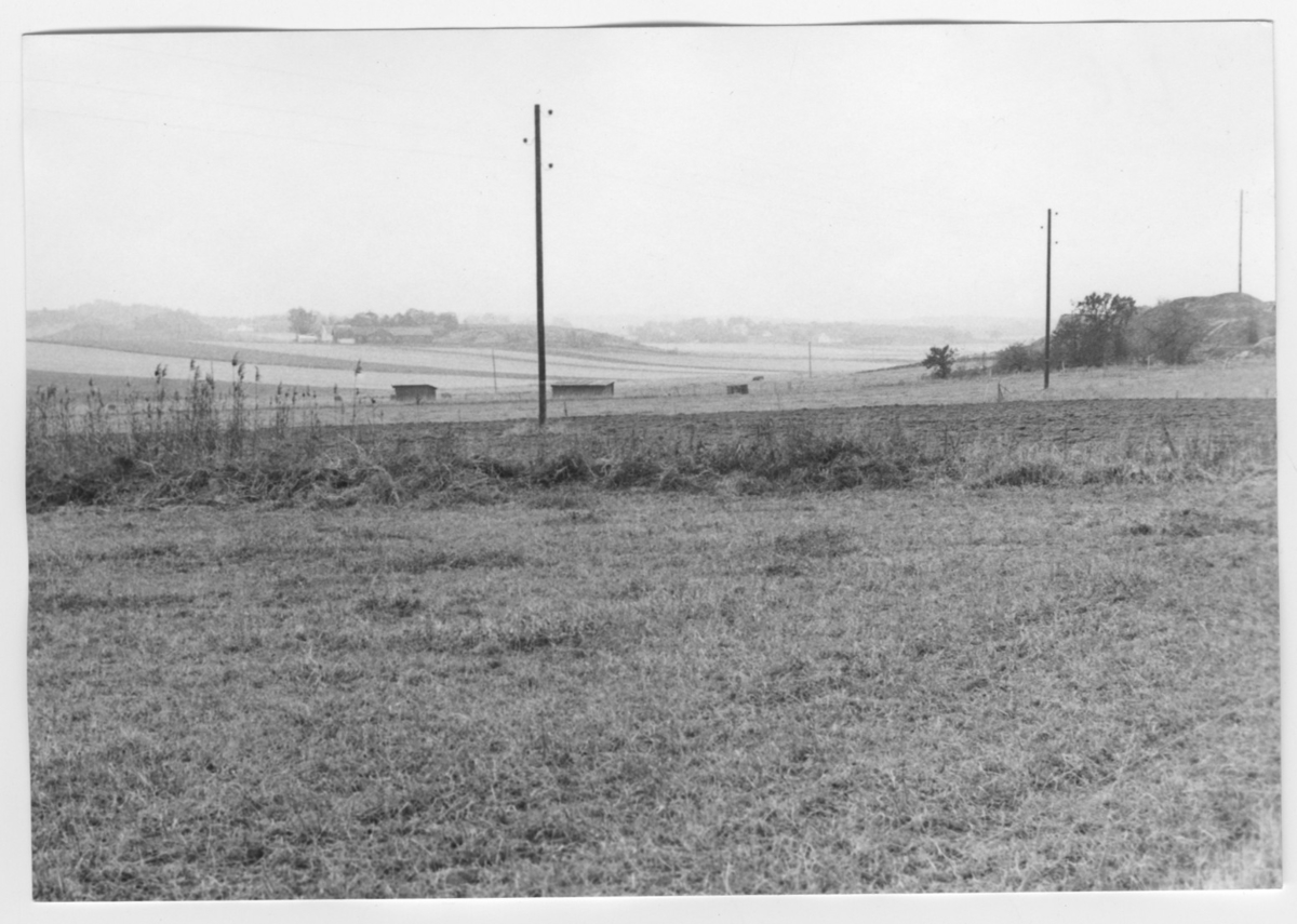 'Bildtext: ''Pansarkvillens dalgång. Riktning 250.'' :: :: Ingår i serie med fotonr. 6970:1-1125, dokumentation av Hisingens naturgeografi, visande landskapsformerna i stora drag och gjord inför exploateringen av området. Platserna för fotograferingen finns utsatta på karta i skala 1:4000 som finns på Göteborgs Naturhistoriska musem. Fotoriktningen mättes med kompass i gammalgrader.'