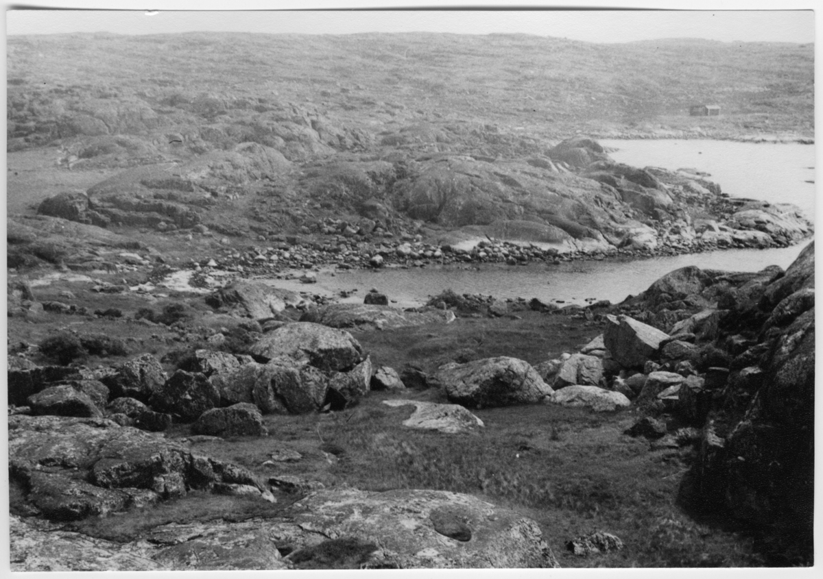 'Lokalen i mitten av vyn. Vy med hav och berghällar. :: :: Ingår i serie med fotonr. 7038:1-16 med bilder från fyndlokaler av skalbaggar i Göteborgstrakten, dessa lokaler finns beskrivna i anteckningsböcker med Arkivnr. 1542.'