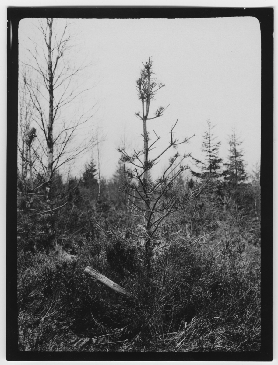 'Tall och björk. Text på baksidan: ''Ung tall avbetad av älg.'' :: :: Ingår i serie med fotonr. 2347-2399.'