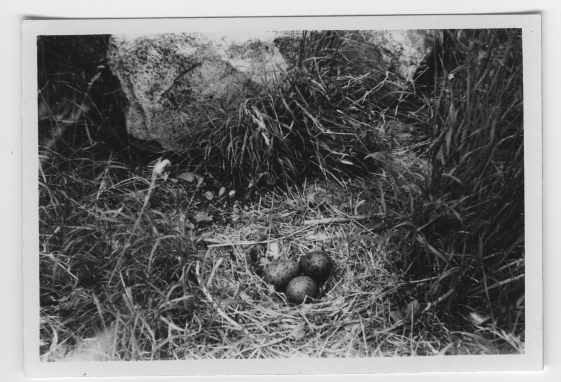 'Text enligt foto: ''Bo med 3 st ägg av skrattmås vid en stor sten på en holme väster om Ottenby. Fotot är taget på 1 meters avstånd.'' :: :: Ingår i serie med fotonr. 4500:1-172.'