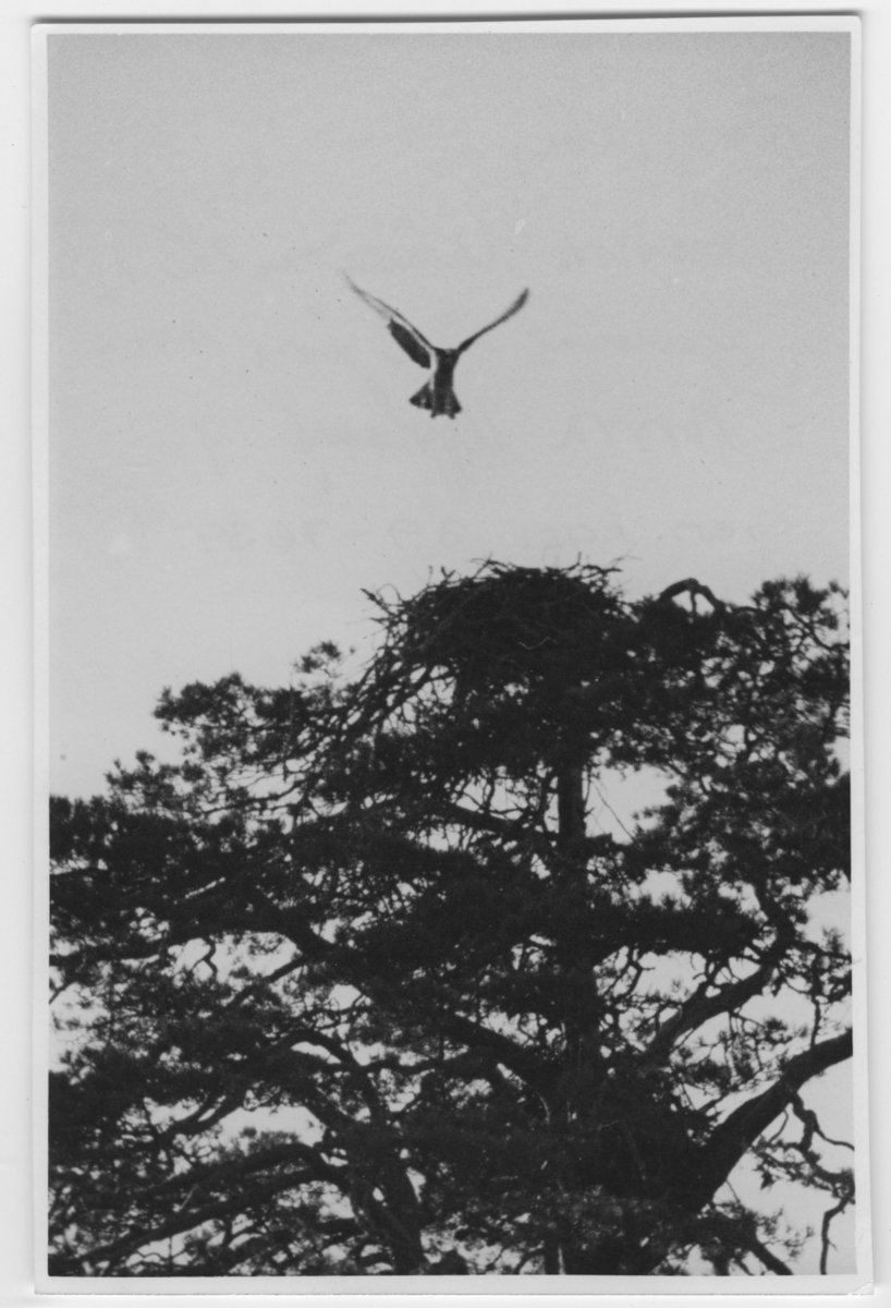 'Gammal fiskgjuse över boet. På väg att landa. :: :: Ingår i serie med fotonr. 4053-4059.'