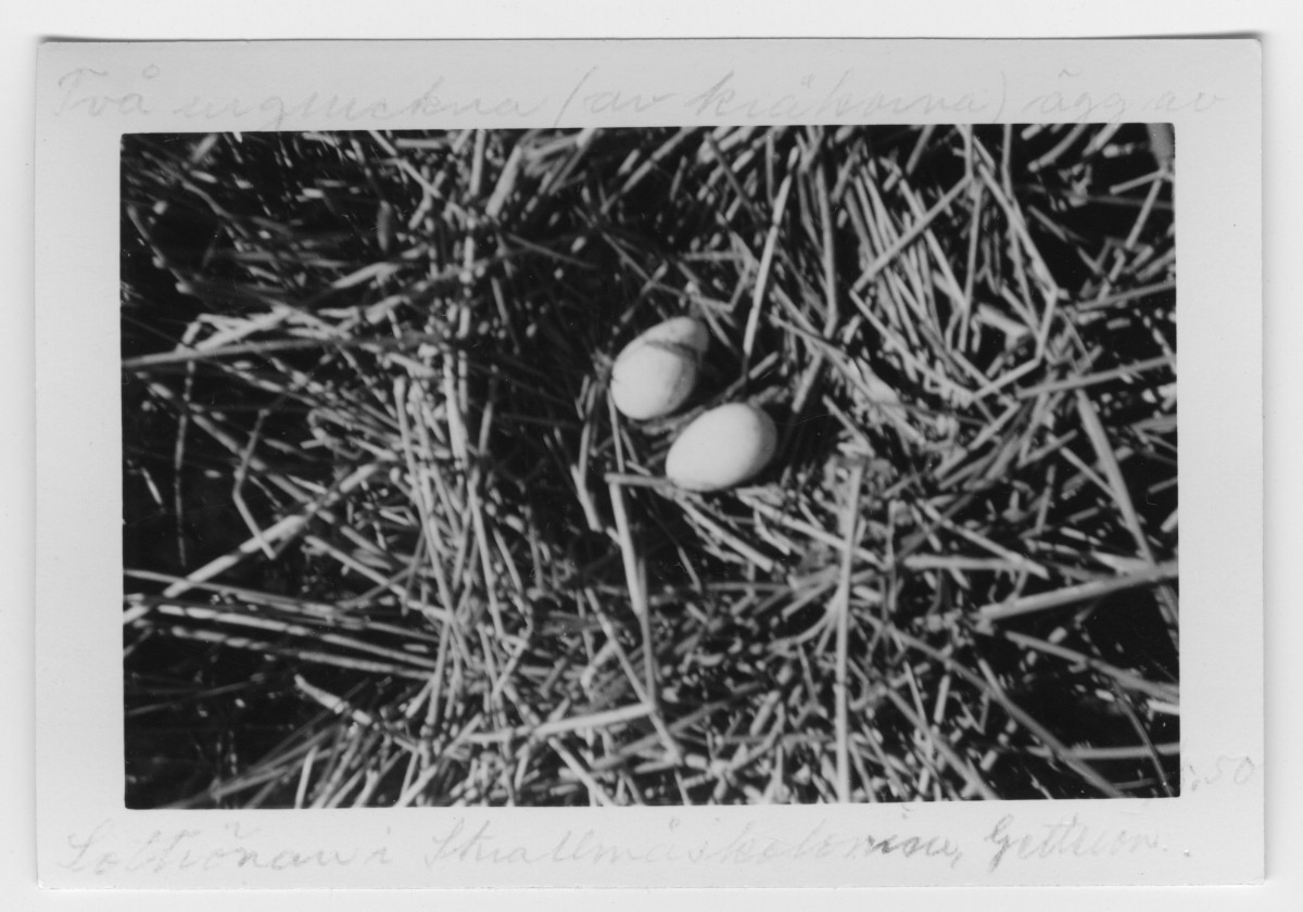 '2 st ägg av sothöna, i boet med vass. :: :: Text på fotot: '' 2 ägg av sothöna i skrattmåskolonin, Getterön.'' :: :: Ingår i serie med fotonr. 4544:1-35.'