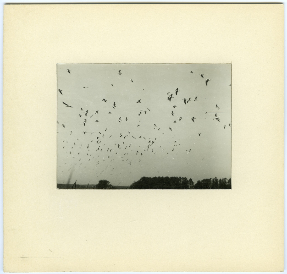 'Bildtext: ''Skrattmåsar över kolonien i Askö.'' :: Vy med fågelmoln av skrattmås. :: :: Ingår i serie med fotonr. 7083:1-55.'