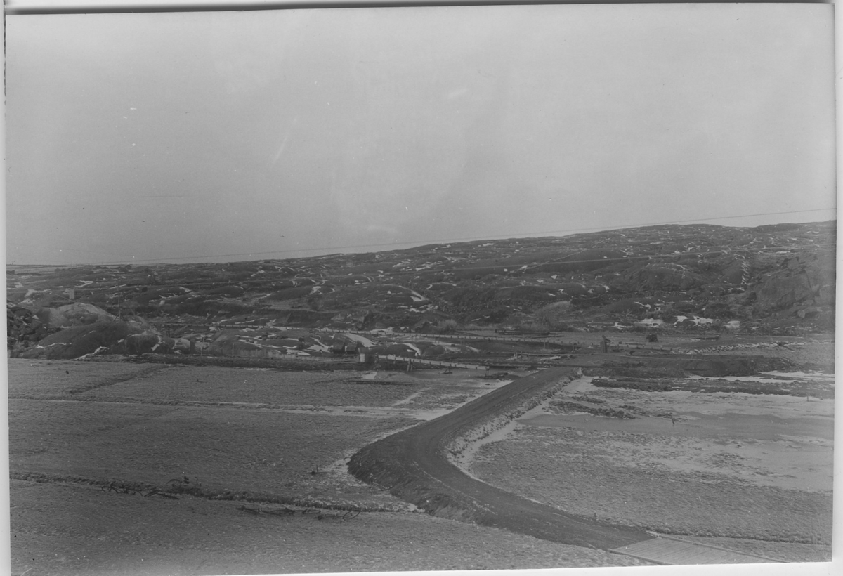 'Från grävningarna i Sotenkanalen: platsen för de fossila benfynden. Vy, fyndplats III = garfågelfyndplatsen. :: :: Vy över grävområdet. Cyklar ligger på marken. :: :: Serie fotonr 2773-2778, bilderna är monterade på papper som har utförlig text, se fotonr. 2776:2. Liknande motiv som fotonr. 2775.'