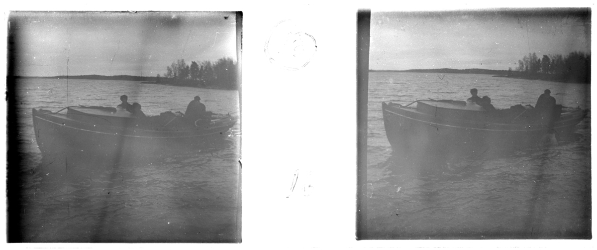 'Bildtext: ''Avfärd från Ökenäs.'' :: Ca 3 människor i en båt i vattnet. :: :: Ingår i serie med fotonr. 5252:1-17, se även hela serien med fotonr. 5237-5267.'
