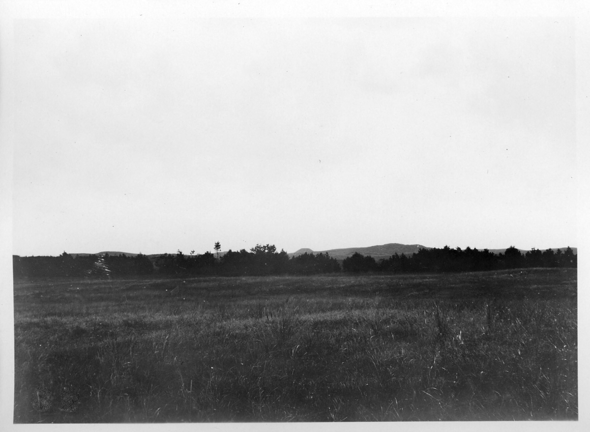 'Akka-expeditionen sommaren 1930: :: :: Utsikt från byn österut med öppen gräsmark och i fonden buskage. :: :: Ingår i serie med fotonr. 2033-2087.'