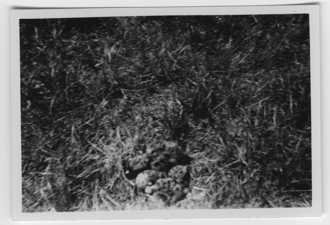 'Text enligt foto: ''2 st nyfödda fisktärnungar mellan 1 st kläckfärdigt ägg på en holme väster om Fågelstationen. Fotot är taget på 55 cm avstånd.'' :: :: Ingår i serie med fotonr. 4500:1-172.'