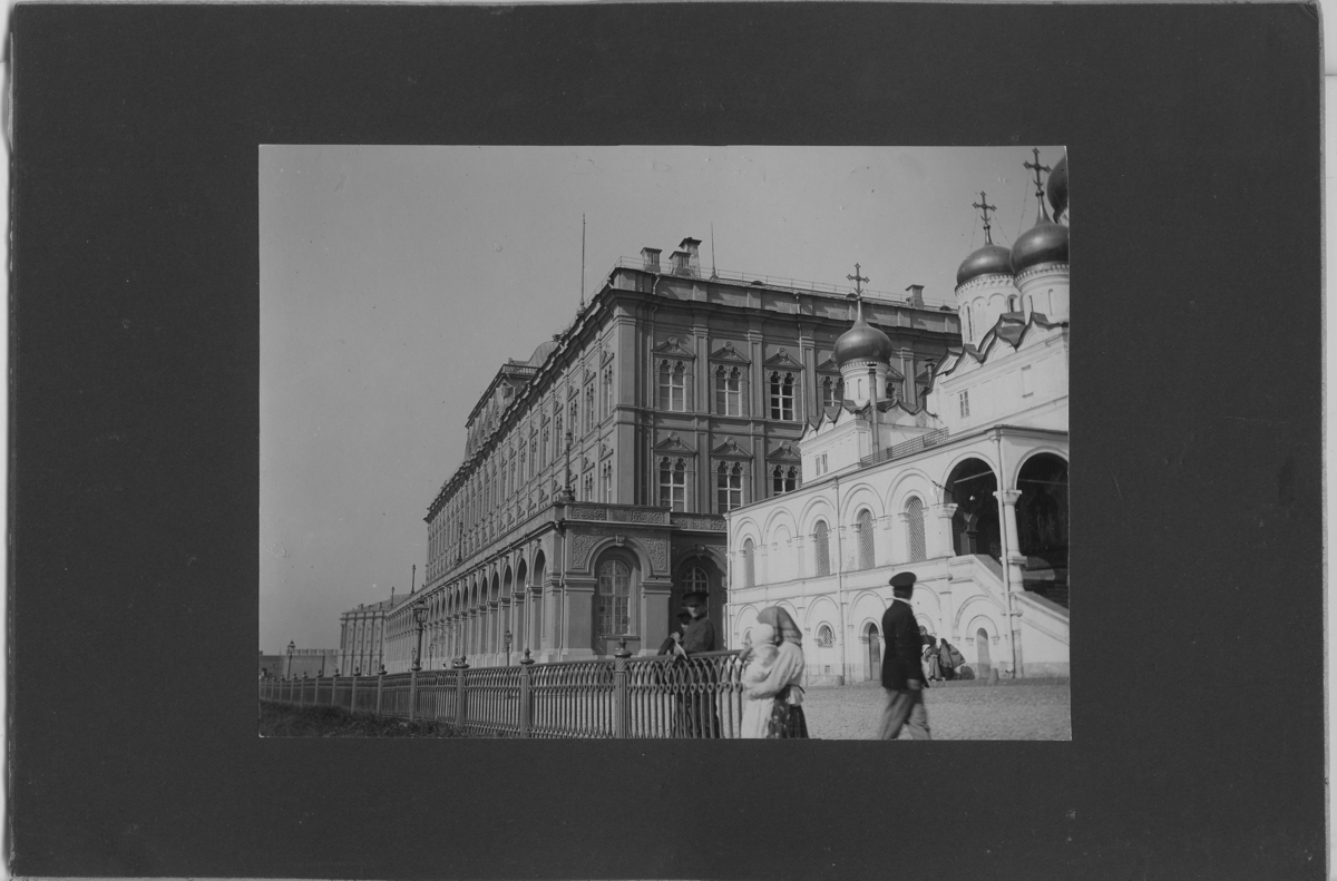 'Närbild på 2 stora byggnader varav en är vit med kupoler, katedral. Människor gående utanför. :: :: Fotonr 5269:14 är på samma motiv.'