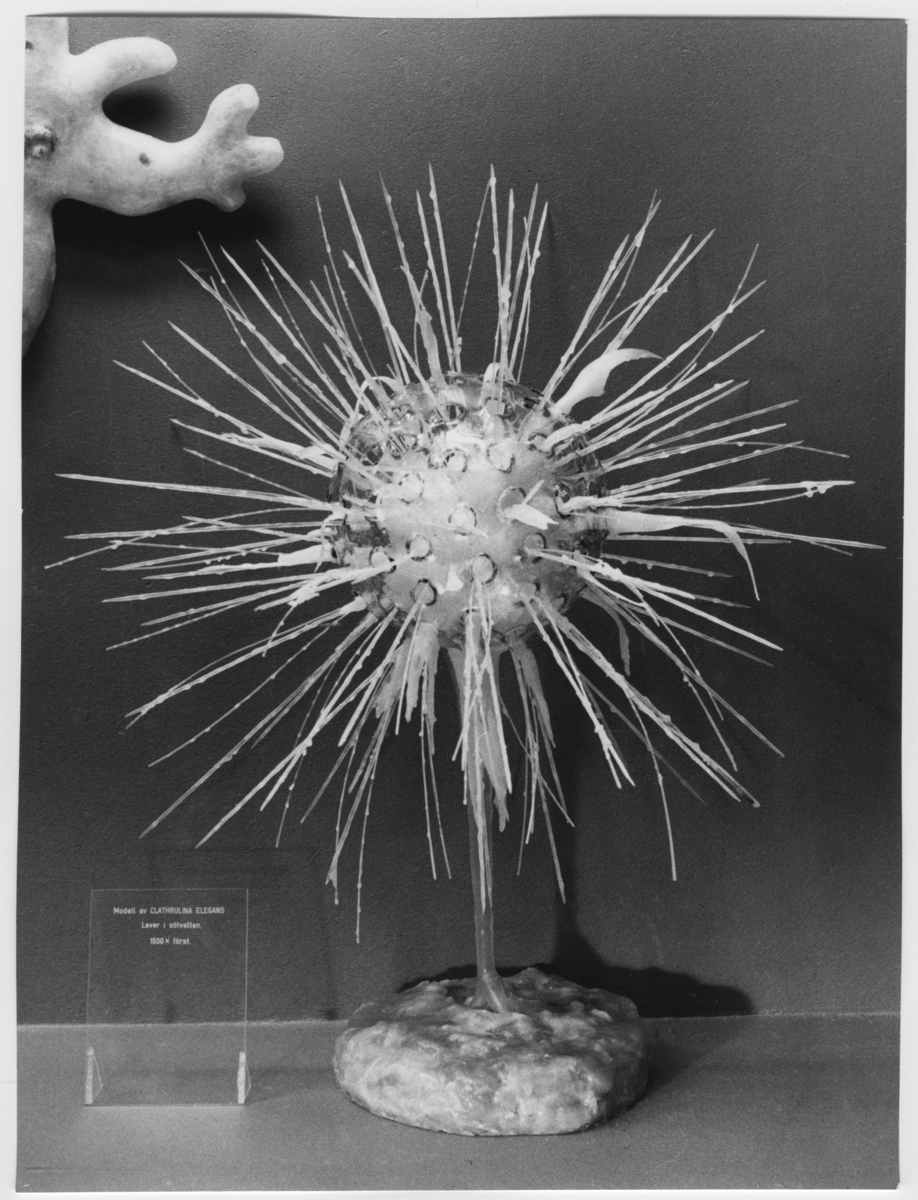 'Bilder från Göteborgs Naturhistoriska museum tagna som övningsuppgift av fotografer på Göteborgs Stads yrkesskolor: :: :: 1500 ggr förstoring av Clathrulina elegans. :: :: Ingår i serie med fotonr. 6953:1-53.'