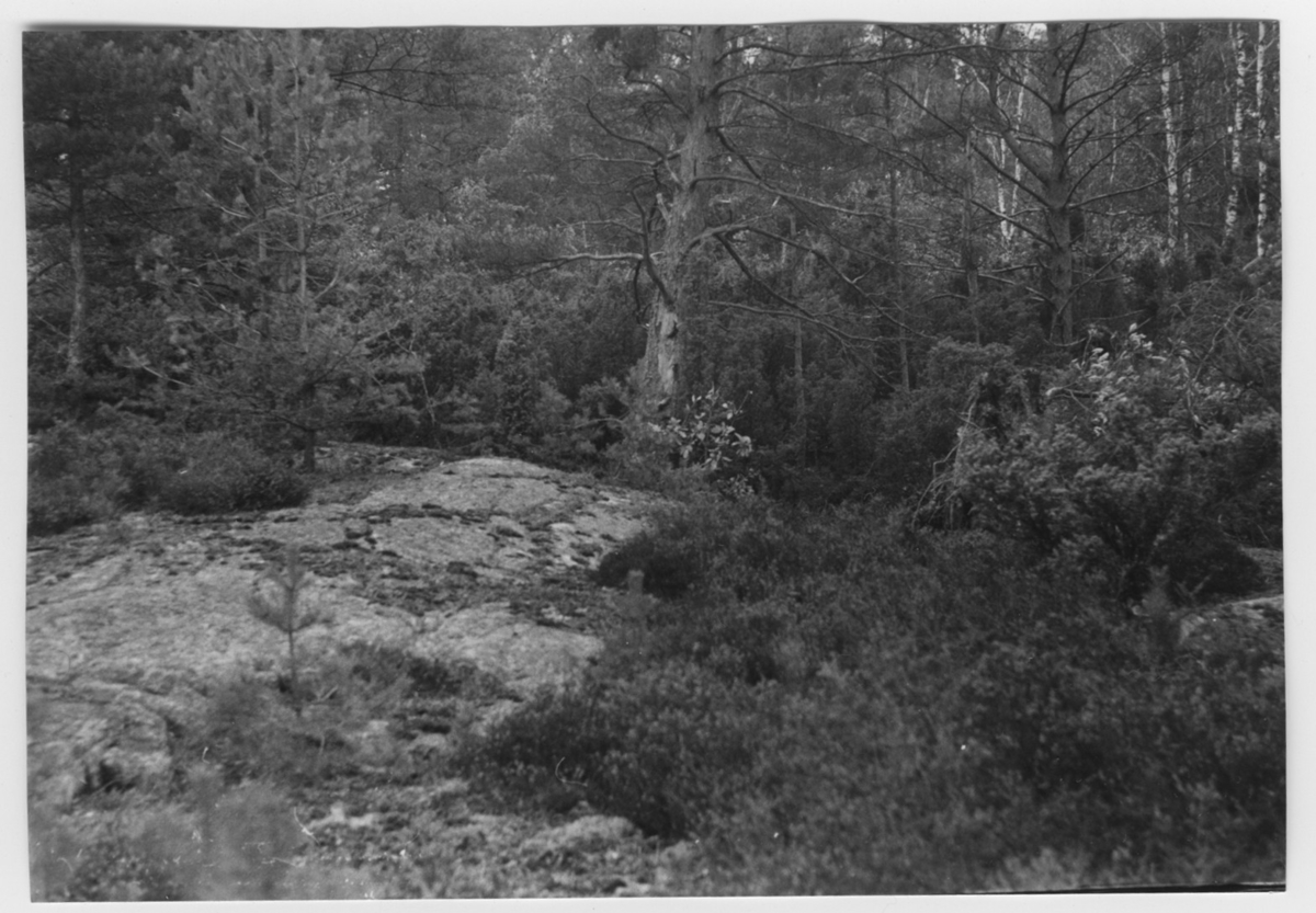 'Bildtext: ''Häll och skog. Riktning 27.'' :: :: Ingår i serie med fotonr. 6970:1-1125, dokumentation av Hisingens naturgeografi, visande landskapsformerna i stora drag och gjord inför exploateringen av området. Platserna för fotograferingen finns utsatta på karta i skala 1:4000 som finns på Göteborgs Naturhistoriska musem. Fotoriktningen mättes med kompass i gammalgrader.'