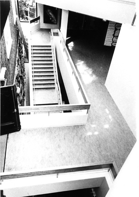 'Tillbyggnad Göteborgs Naturhistoriska Museum juli 1980. Interiör från tredje våningen och trappan ner till entreplanet. :: :: Ingår i serie med fotonr. 5527:69-216.'