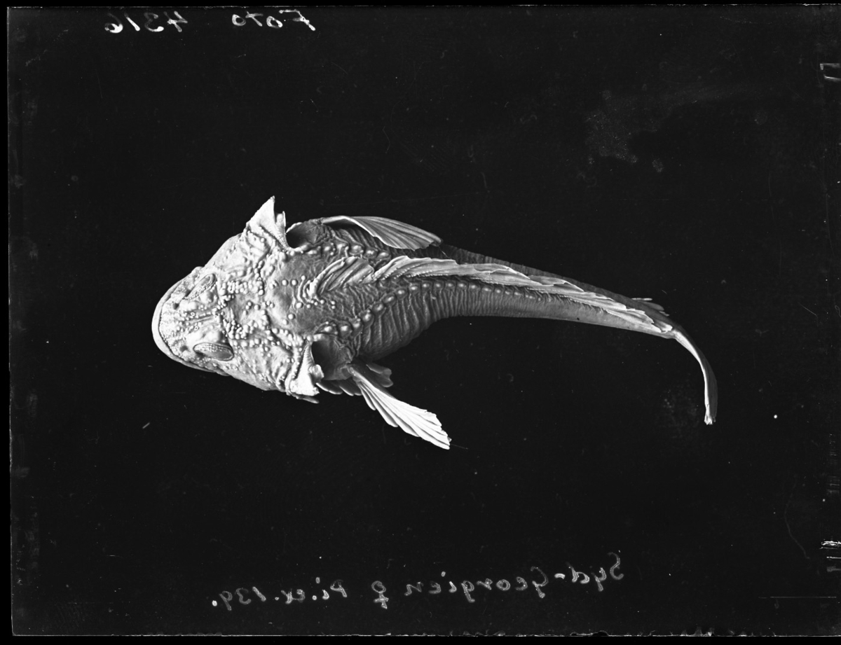 'Harpagifer georgianus, sedd från ryggsidan. Fynddatum: 1908-00-00. :: :: Ingår i serie med fotonr. 4316:1-4.'