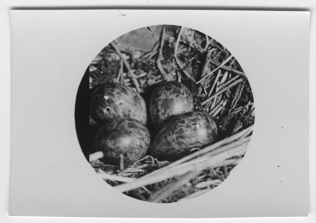 'Bo av roskarl, närbild på 4 ägg. Bilden rund. :: :: Ingår i serie med fotonr. 3495-3511.'