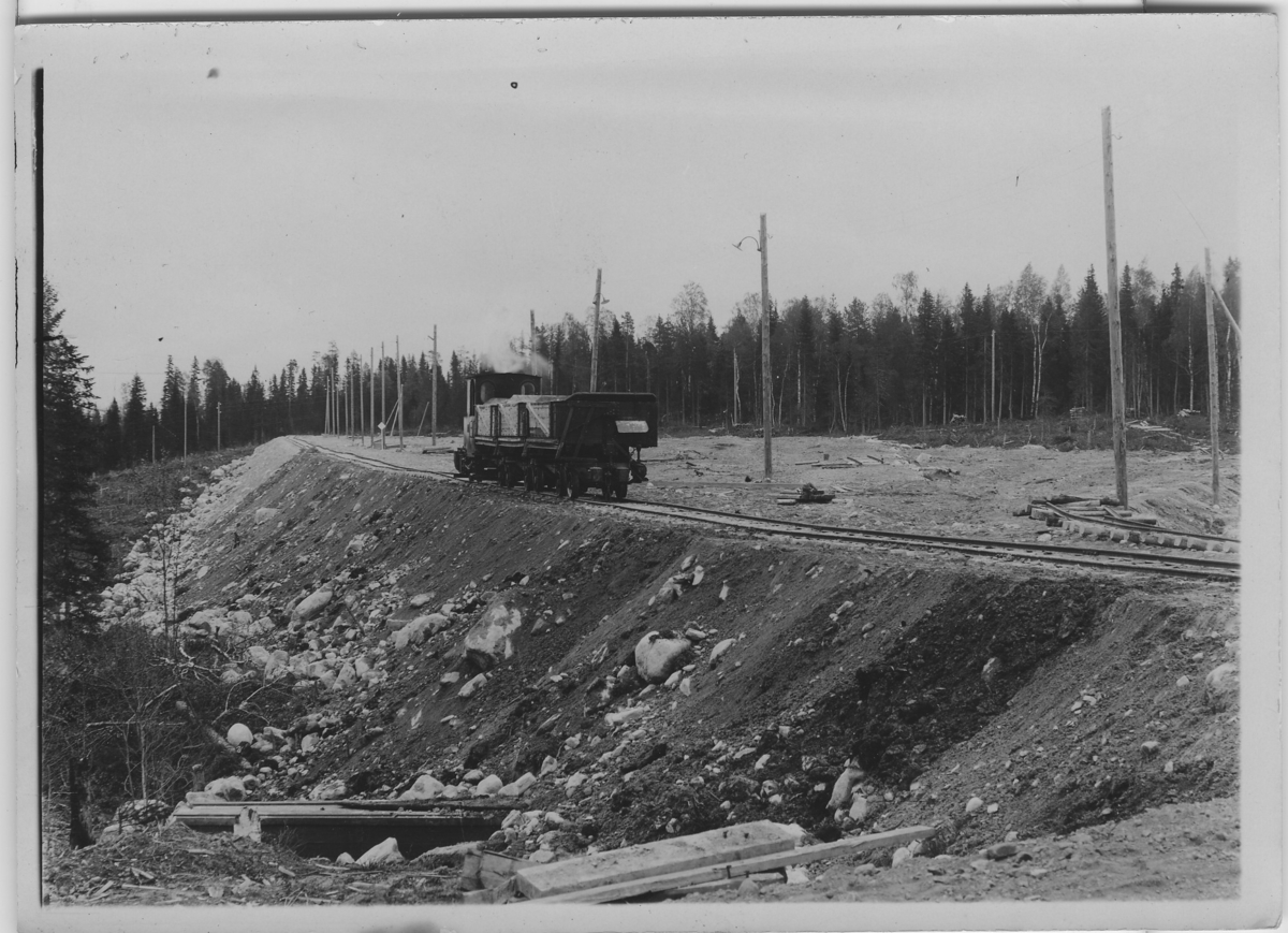 'Bolidens gruva, :: Järnväg med lok och vagn. Bangården. :: Samma motiv som 4957. :: :: Serie fotonr 4931-4967.'
