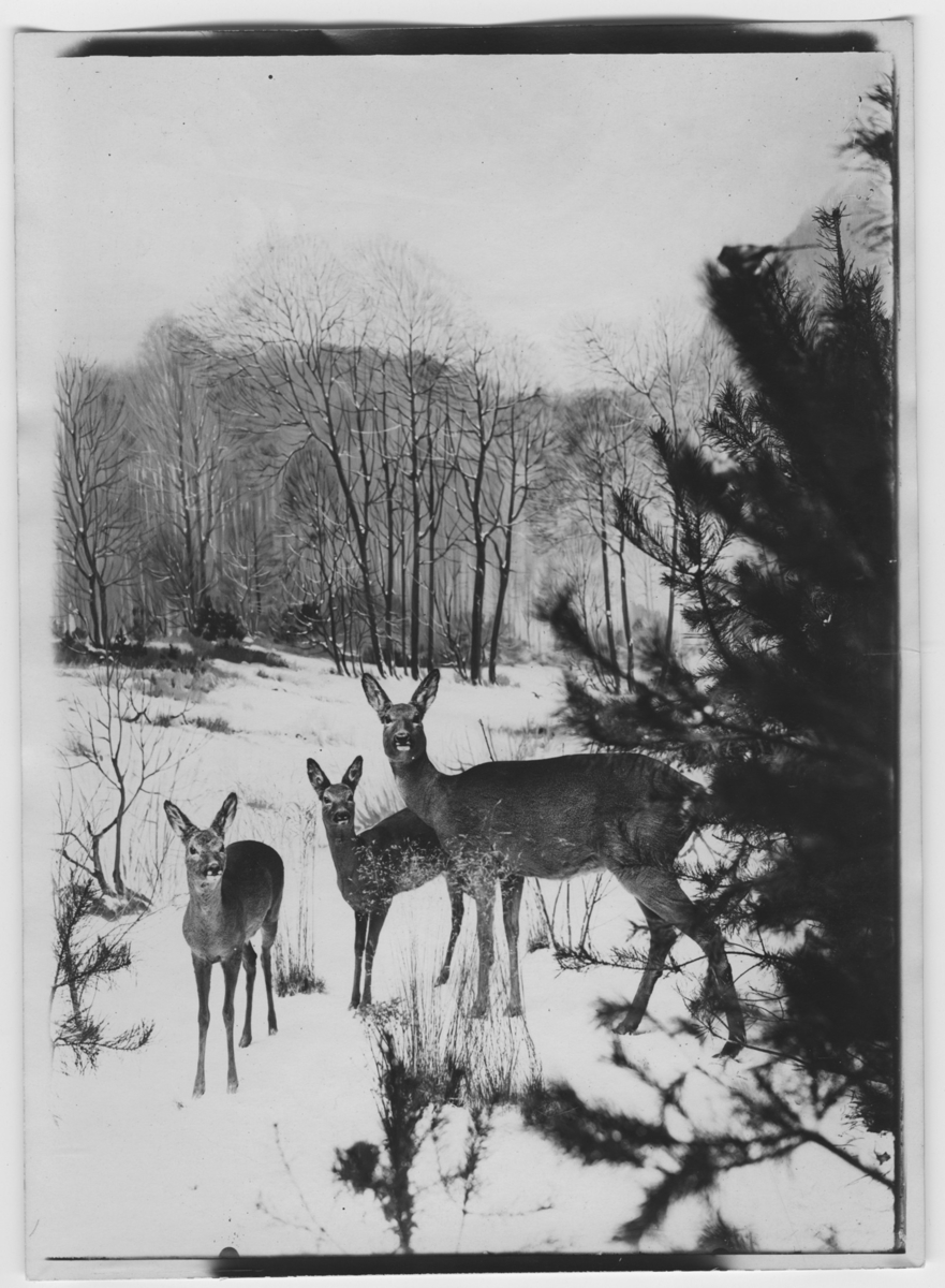 'Råget med 2 killingar. I glänta. :: :: Ingår i en serie fotonr. 3096-3108 med 12 st fotografier av dioramorna i Zoologiska museet i Berlin och fotonr. 3109-3120 med 12 st fotografier av dioramorna i Hermann-Roemer-museet, Hildesheim.'