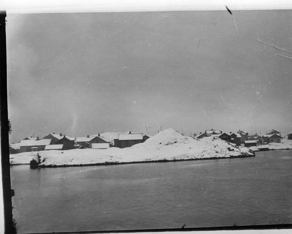 'Skagerrakexpeditionen 1933-03-06 - 1933-03-08: :: :: Vy med Källö med hus sedd utifrån havet, snöklädd.. :: :: Ingår i serie med fotonr. 2828-2838.'