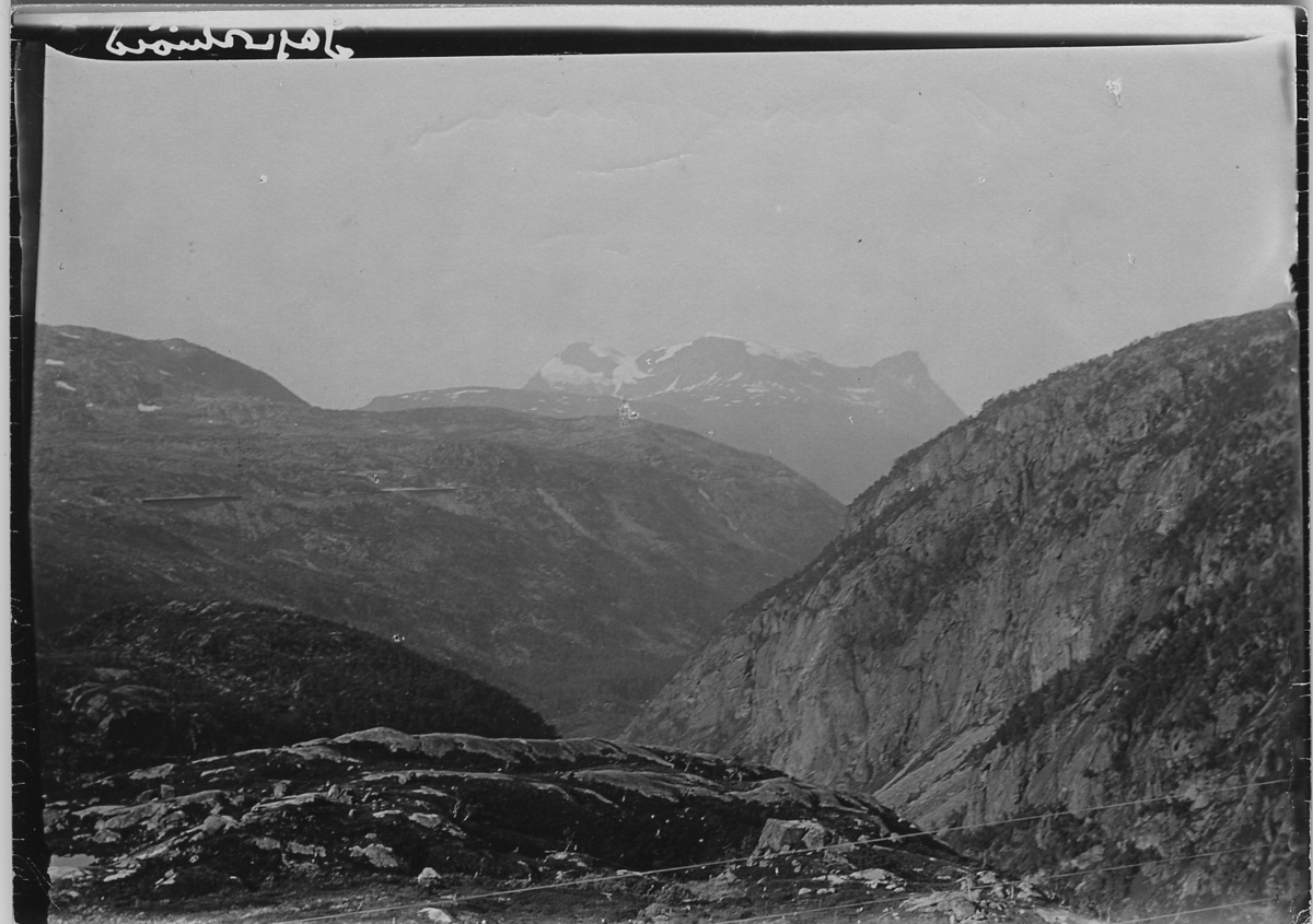 'Från Professor Leonard Axel Jägerskiölds ripjakter vid Fjällåsen. :: :: Vy över bergstoppar. Antecknat på baksidan av fotografiet: ''Riksgränsbanan norska delen''. :: :: Ingår i serie med fotonr. 4312:1-38.'