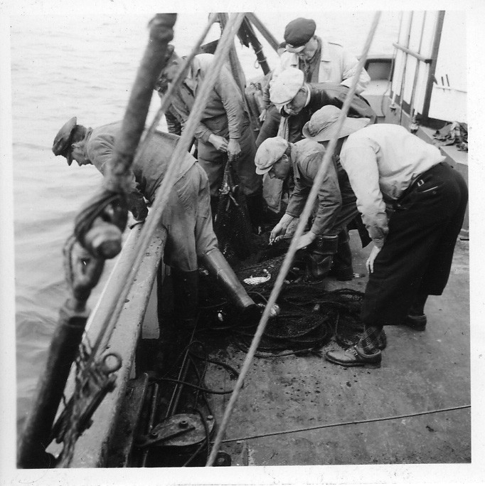 'Från Göteborgs Biologiska förenings Älv- och Vänern-expeditionen: :: :: Arbete på däck. :: :: Ingår i serie med fotonr. 3934-3953 med foton från Göteborgs Biologiska förenings expeditioner.'